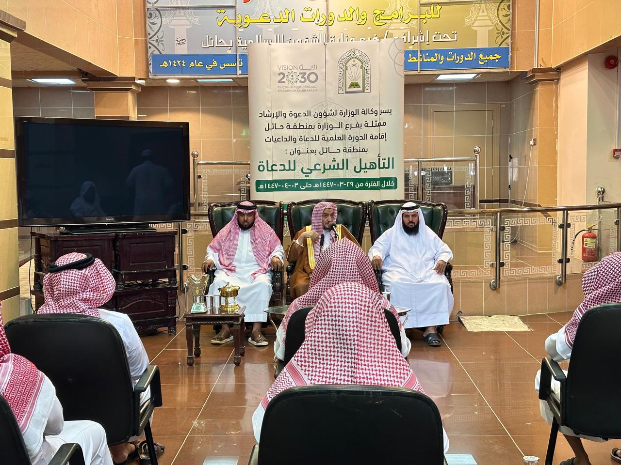 ​​أقامت وزارة الشؤون الإسلامية والدعوة والإرشاد، ممثلةً بوكالة الوزارة لشؤون الدعوة والإرشاد، دورةً علمية بعنوان: «التأهيل الشرعي للدعاة»، وذلك بمركز الشيخ عيسى الملق في منطقة حائل، بمشاركة عددٍ من