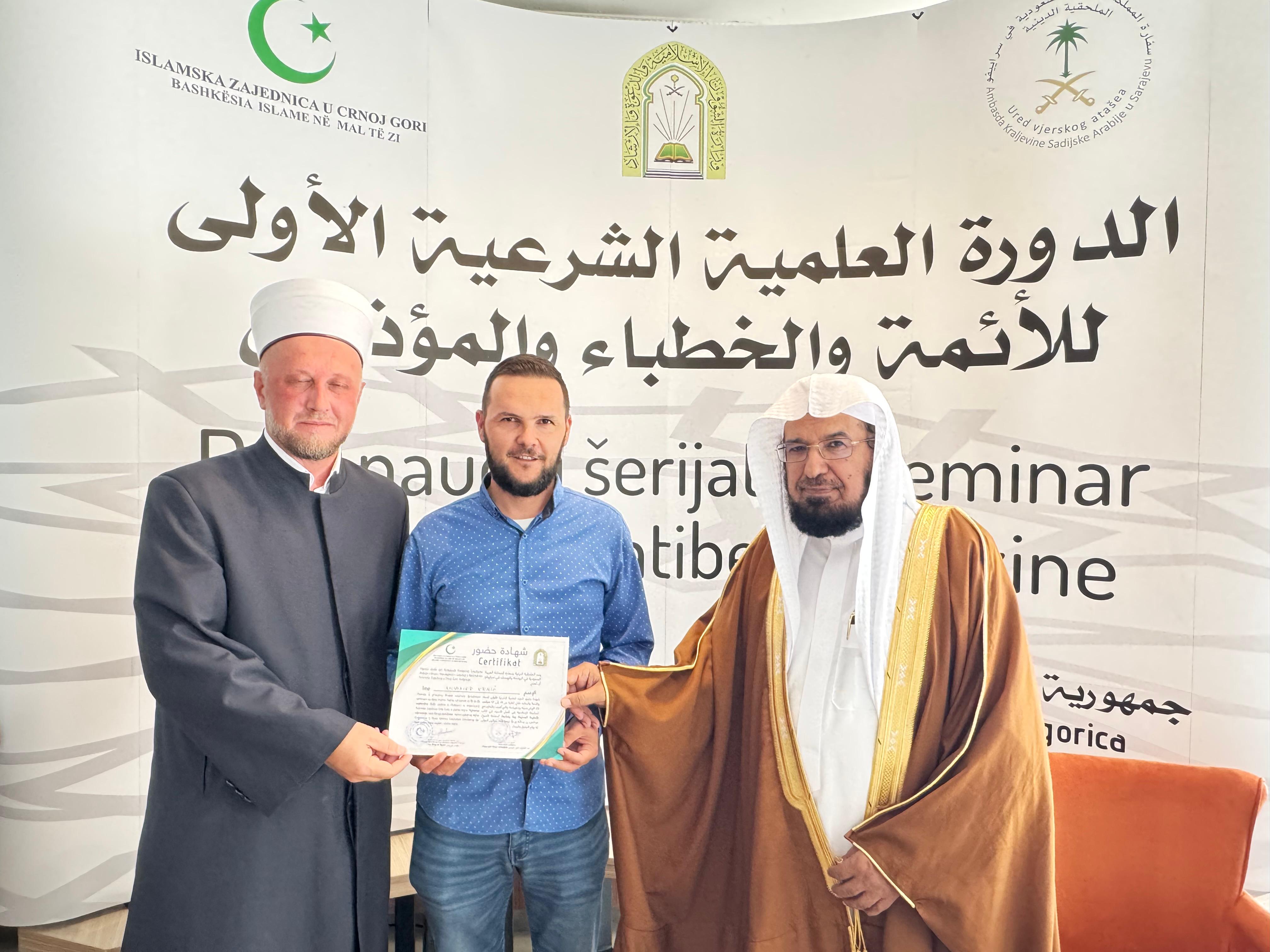 الشؤون الإسلامية تختتم الدورة العلمية الشرعية للأئمة والخطباء والمؤذنين في الجبل الأسوداختتمت وزارة الشؤون الإسلامية والدعوة والإرشاد، ممثلةً بمكتب الملحقية الدينية بسفارة خادم الحرمين الشريفين في البوسنة والهرسك، اليوم 30 ربيع الأول 1447هـ، الدورة العلمية الشرعية للأئمة والخطباء والدعاة، 30/ربيع الأول/1447 التفاصيل