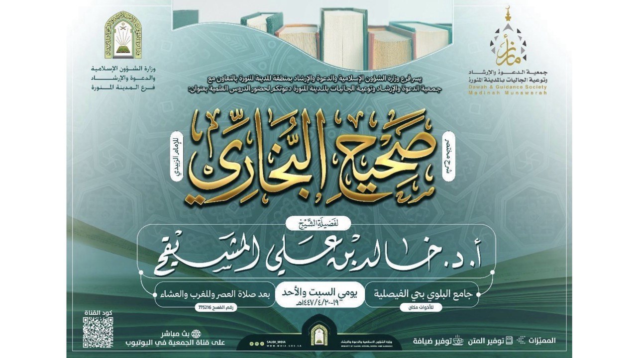 فرع الشؤون الإسلامية بالمدينة المنورة ينفذ سلسلة من الدروس والمحاضرات الدعوية ضمن برنامج "التوحيد أولاً" ينفذ فرع وزارة الشؤون الإسلامية والدعوة والإرشاد بالمدينة المنورة، سلسلة من الدروس والمحاضرات الدعوية، وذلك ضمن برنامج "التوحيد أولاً" الذي يبدأ اليوم الثلاثاء الخامس عشر من شهر ربيع الآخر ١٤٤٧هـ، 15/ربيع الثاني/1447 التفاصيل