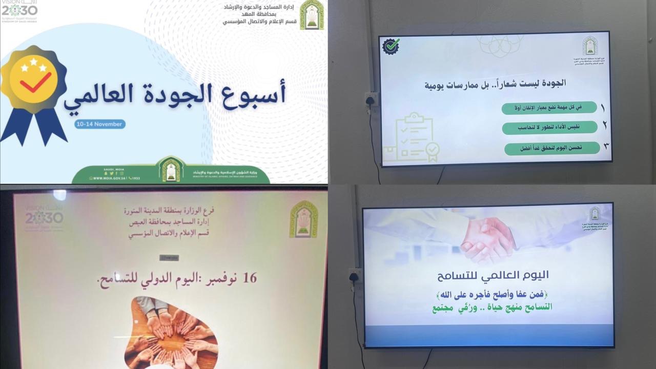 فرع الشؤون الإسلامية بالمدينة يشارك في فعاليات اليوم العالمي للجودة واليوم العالمي التسامح بمحافظات المنطقةشارك فرع وزارة الشؤون الإسلامية والدعوة والإرشاد بمنطقة المدينة المنورة، ممثلاً بإدارة المساجد والدعوة والإرشاد بمحافظتي وادي الفرع ومهد الذهب، في فعاليات اليوم العالمي للجودة 2025م، يوم الخميس الثاني 26/جمادى الأولى/1447 التفاصيل