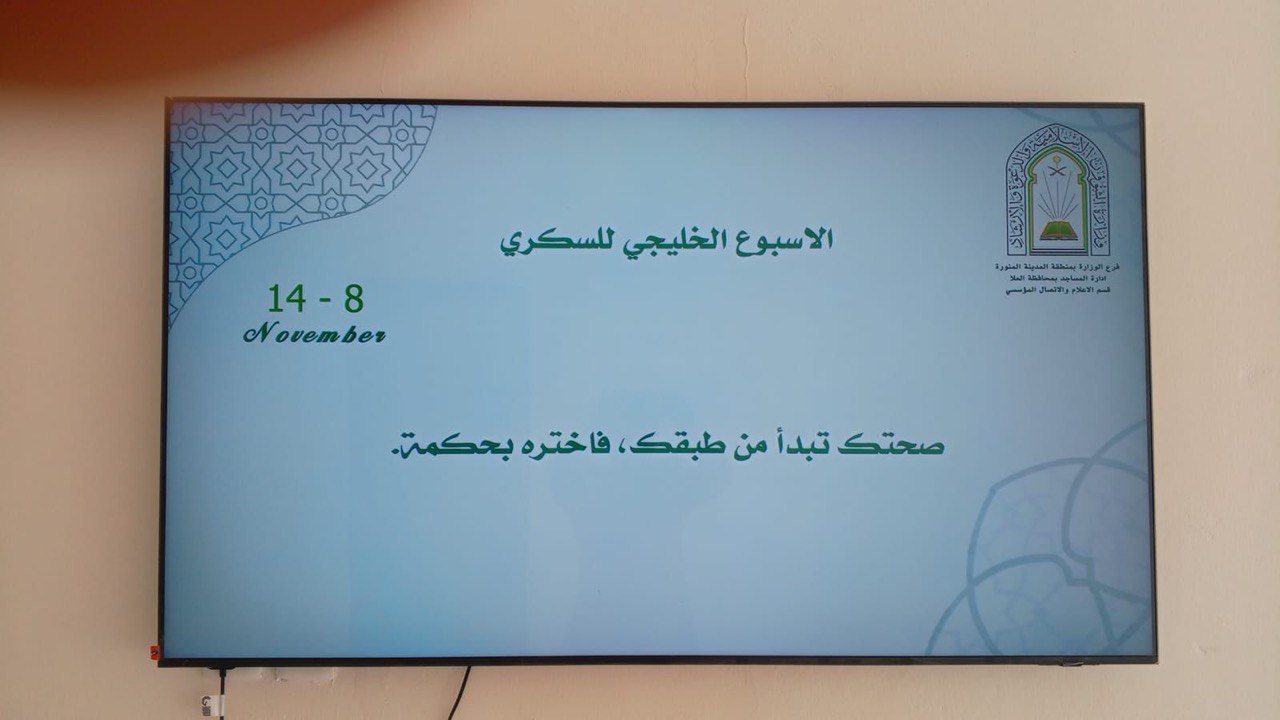 فرع الشؤون الإسلامية بالمدينة يُشارك في الأسبوع الخليجي للسكري بمحافظة العلاشارك فرع وزارة الشؤون الإسلامية والدعوة والإرشاد بمنطقة المدينة المنورة، ممثلاً بإدارة المساجد بمحافظة العُلا، اليوم الأحد الثامن عشر من شهر جمادى الأولى ١٤٤٧هـ، في الأسبوع الخليجي للسكري الذي يُقام في 18/جمادى الأولى/1447 التفاصيل