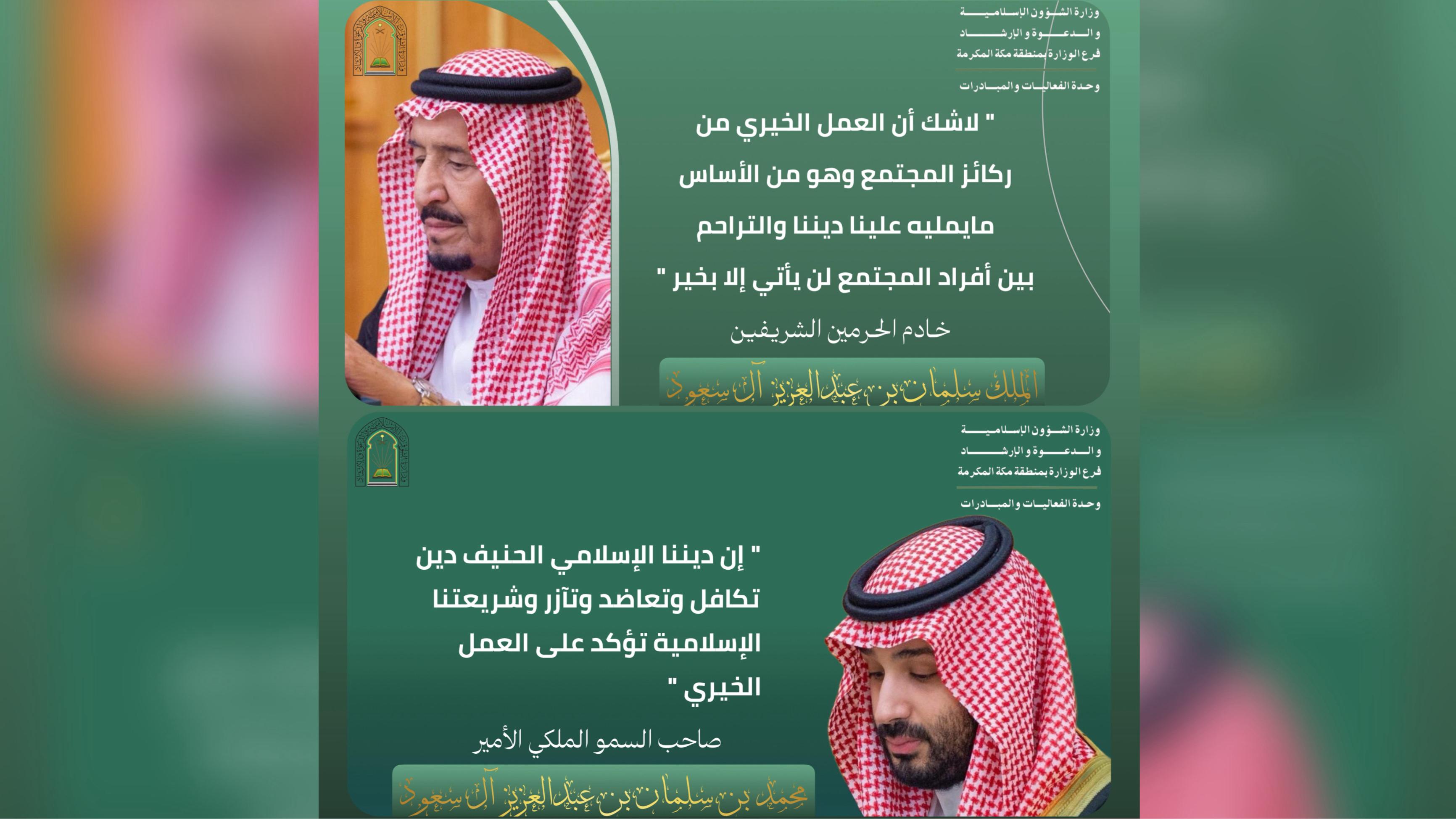 فرع الشؤون الإسلامية بمكة المكرمة يشارك في اليوم العالمي للعمل الخيريشارك فرع وزارة الشؤون الإسلامية والدعوة والإرشاد بمنطقة مكة المكرمة، ممثلاً بوحدة الفعاليات والمبادرات، في فعاليات اليوم العالمي للعمل الخيري الذي يوافق الخامس من سبتمبر من كل عام، وذلك من خلال مبادرة 15/ربيع الأول/1447 التفاصيل