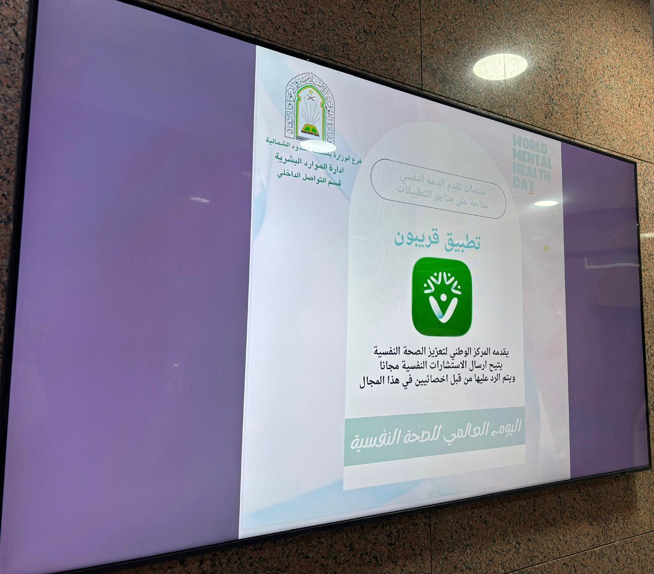 فرع الشؤون الإسلامية بالحدود الشمالية يشارك في اليوم العالمي للصحة النفسيةشارك فرع وزارة الشؤون الإسلامية والدعوة والإرشاد بمنطقة الحدود الشمالية، يوم الأحد العشرين من شهر ربيع الآخر لعام 1447هـ، في فعاليات اليوم العالمي للصحة النفسية، الذي يُصادف العاشر من أكتوبر من كل عام، 21/ربيع الثاني/1447 التفاصيل