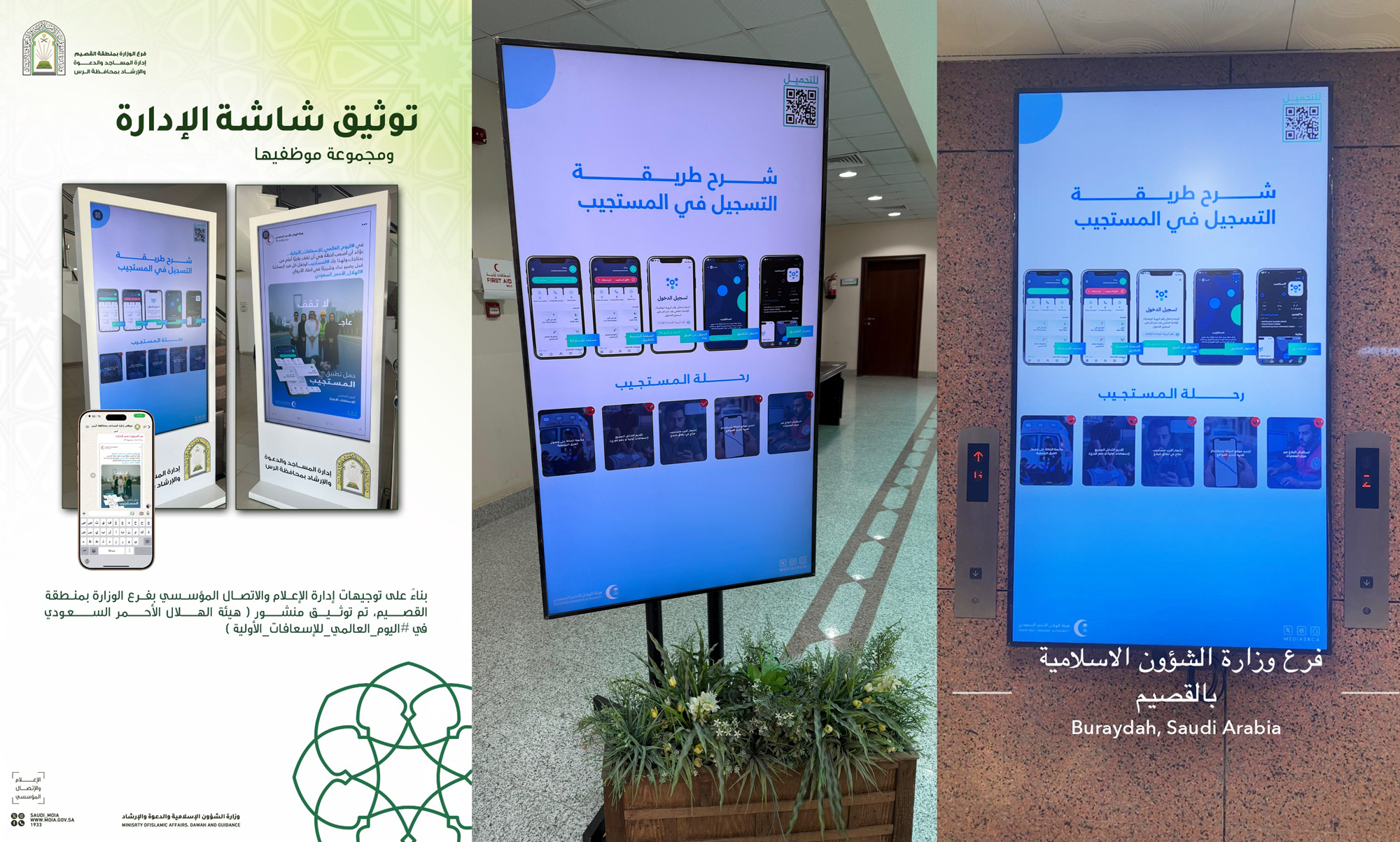 الشؤون الإسلامية بالقصيم يشارك في اليوم العالمي للإسعافات الأوليةشارك فرع وزارة الشؤون الإسلامية والدعوة والإرشاد بمنطقة القصيم، في فعاليات اليوم العالمي للإسعافات الأولية، من خلال بث عددٍ من المواد التوعوية عبر الشاشات التفاعلية في مقرات الفرع والمحافظات التابعة له، 23/ربيع الأول/1447 التفاصيل