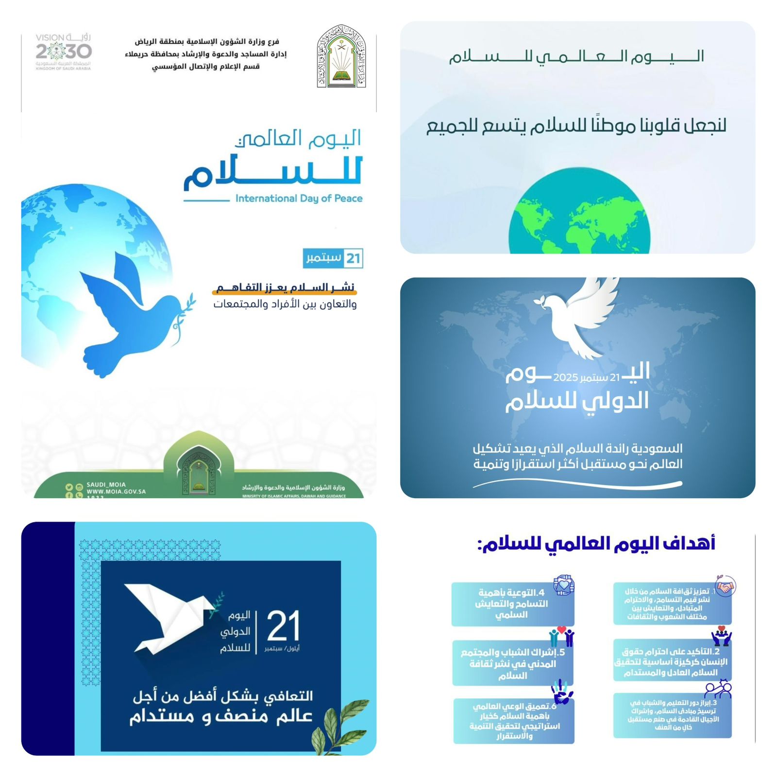 فرع الشؤون الإسلامية بالرياض يشارك في اليوم العالمي للسلامشارك فرع وزارة الشؤون الإسلامية والدعوة والإرشاد بمنطقة الرياض، ممثلاً بإدارة المساجد والدعوة والإرشاد بالمحافظات، في فعاليات اليوم العالمي للسلام الذي يوافق 30/ربيع الأول/1447 التفاصيل