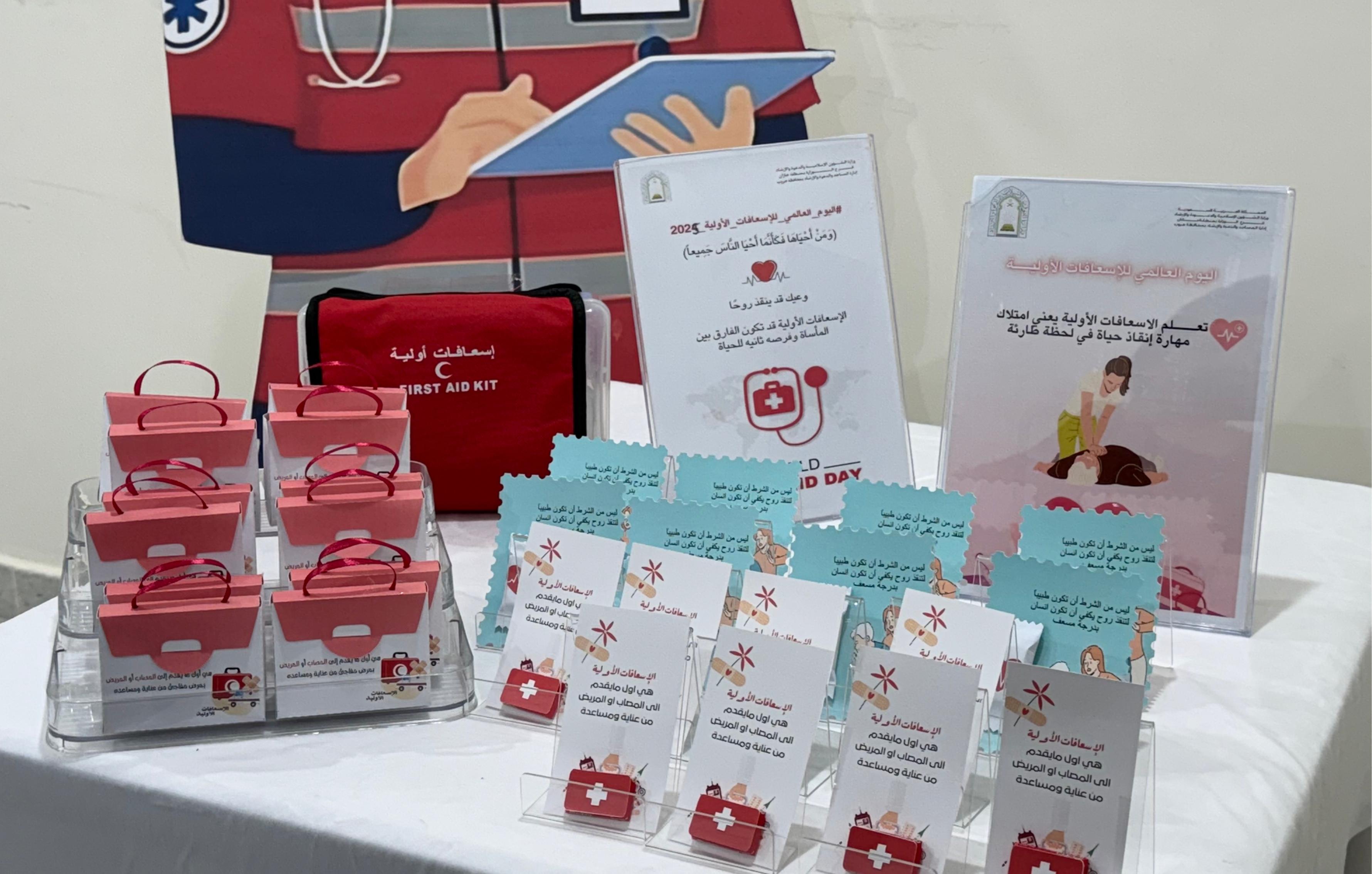 الشؤون الإسلامية بجازان تشارك في اليوم العالمي للإسعافات الأولية بمحافظة هروب شارك فرع وزارة الشؤون الإسلامية والدعوة والإرشاد بمنطقة جازان، ممثلاً بإدارة المساجد والدعوة والإرشاد بمحافظة هروب، أمس الاثنين الثالث والعشرين من شهر ربيع الأول لعام 1447هـ، في اليوم العالمي للإسعافات 24/ربيع الأول/1447 التفاصيل