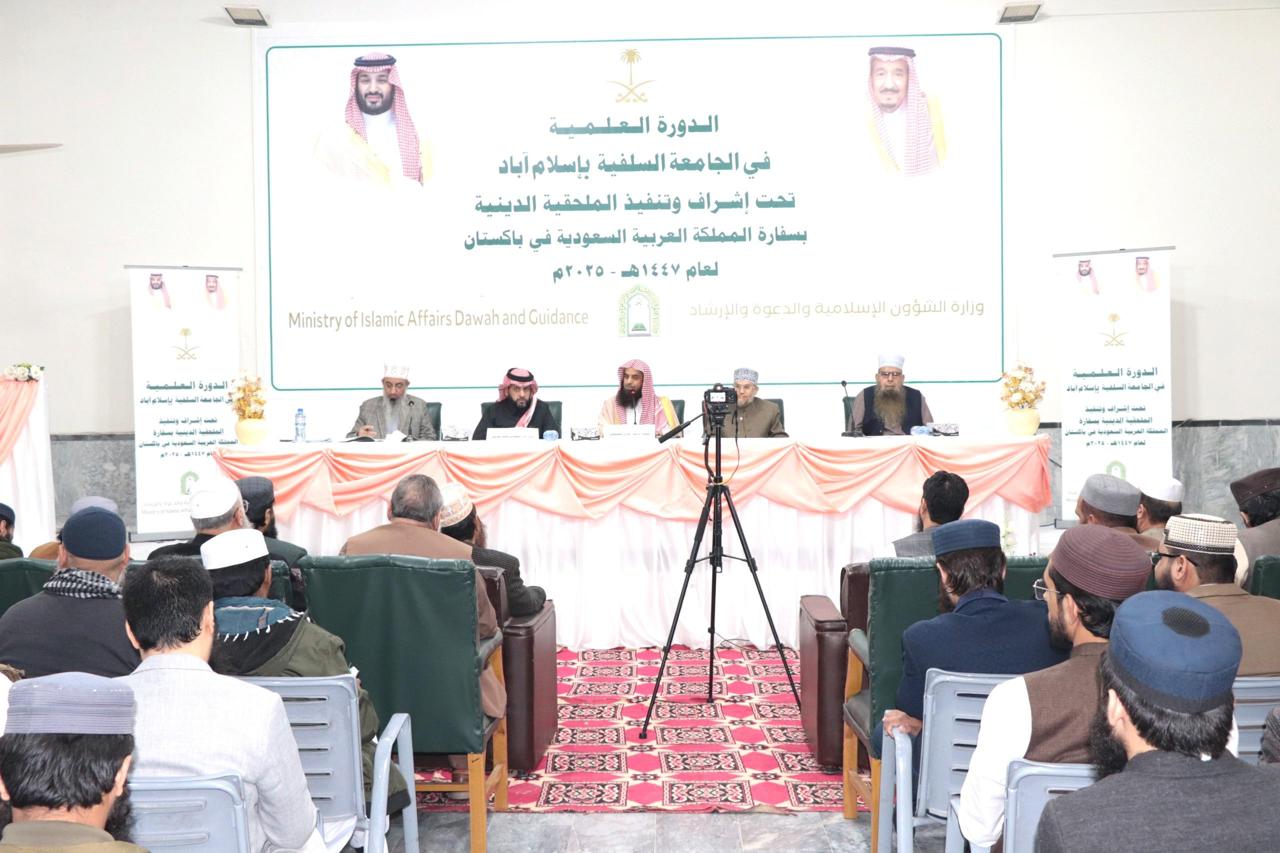 أخبار الشؤون الإسلامية تقيم دورة علمية للأئمة والخطباء في إسلام آبادتقيم وزارة الشؤون الإسلامية والدعوة والإرشاد ممثلة بالملحقية الدينية في باكستان دورة علمية للأئمة والخطباء والدعاة وطلبة العلم انطلقت فعالياتها صباح يوم الاثنين ٢٦ جمادى الأولى ١٤٤٧هـ في العاصمة الباكستانية ... التفاصيل