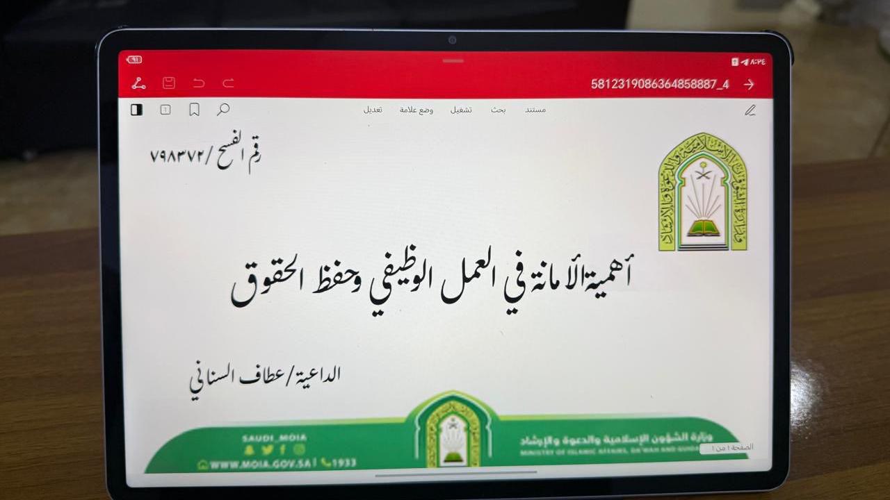 أخبار أنشطة دعوية وعلمية ينفّذها فرع الشؤون الإسلامية بالحدود الشمالية في طريفنفّذ فرعُ وزارة الشؤون الإسلامية بالحدود الشمالية، ممثلاً بإدارة المساجد والدعوة والإرشاد بمحافظة طريف، خلال الفترة من 18 إلى 24 جمادى الأولى 1447هـ، سلسلةً من المحاضرات والدروس والكلمات الدعوية في الجوامع ... التفاصيل