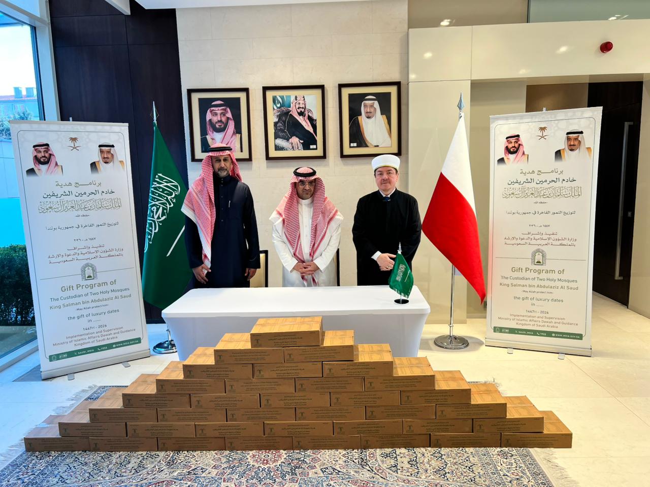 أخبار الشؤون الإسلامية تُسلّم هدية خادم الحرمين الشريفين من التمور لجمهورية بولنداسلّمت وزارة الشؤون الإسلامية والدعوة والإرشاد هدية خادم الحرمين الشريفين من التمور لجمهورية بولندا، وذلك خلال حفل التدشين الذي أُقيم في مقر سفارة المملكة العربية السعودية في وارسو 28 شعبان 1447هـ، ضمن ... التفاصيل