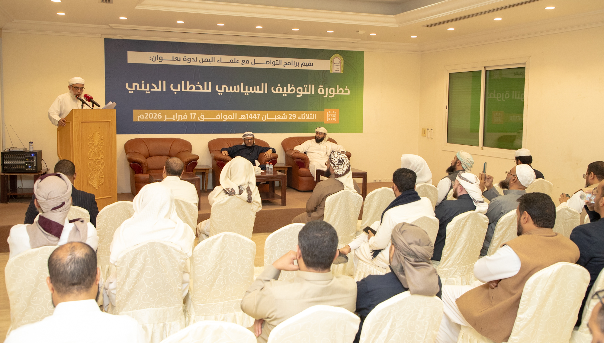 أخبار ضمن برنامج التواصل مع علماء اليمن الشؤون الإسلامية تنظم ندوة حول مخاطر التوظيف السياسي للخطاب الدينينظّمت وزارة الشؤون الإسلامية والدعوة والإرشاد ممثلة ببرنامج التواصل مع علماء اليمن اليوم الثلاثاء 29 شعبان 1447هـ، بمقر البرنامج بالعاصمة الرياض ندوةً فكرية بعنوان خطورة التوظيف السياسي للخطاب الديني، ... التفاصيل
