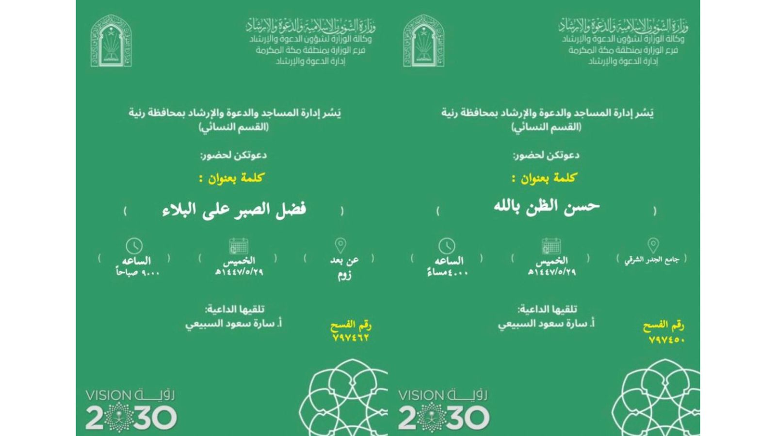 أخبار فرع الشؤون الإسلامية بالمدينة المنورة ينفذ سلسلة من الكلمات الدعوية النسائية بمحافظة العيصنفذ فرع وزارة الشؤون الإسلامية والدعوة والإرشاد بمنطقة المدينة المنورة، ممثلاً بإدارة المساجد بمحافظة العيص، خلال الفترة من الخامس عشر، وحتى الحادي والعشرين من شهر جمادى الأولى ١٤٤٧هـ، سلسلة من الكلمات ... التفاصيل