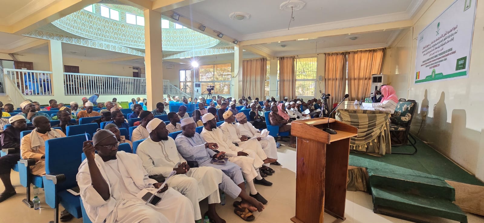 تواصل وزارة الشؤون الإسلامية تنفيذ الدورة العلمية لتأهيل الدعاة في داكار لليوم الثاني وسط تفاعل واسع من الدعاة وطلبة العلمMOIA16/جمادى الأولى/1447MOIAالإدارة العامة للإعلام والإتصال المؤسسيسنغال2 تتواصل لليوم الثاني أعمال الدورة العلمية الثالثة لتأهيل وتدريب الدعاة التي تنظمها وزارة الشؤون الإسلامية والدعوة والإرشاد في الجامعة الإفريقية بالعاصمة السنغالية داكار وسط حضور مميز وتفاعل واسع من الأئمة والدعاة وطلبة العلم الذين امتلأت بهم القاعة شغفا بالمعرفة وحبا للعلم الشرعي. ويواصل فضيلة الشيخ الأستاذ الدكتور علي بن يحيى حدادي تقديم دروسه العلمية شارحا متن عقيدة السلف أصحاب الحديث للإمام أبي عثمان الصابوني رحمه الله موضحا أصول المنهج السلفي في الاعتقاد وداعيا إلى التمسك بالكتاب والسنة والابتعاد عن البدع والانحراف ورصدت عدسة وزارة الشؤون الإسلامية انطباعات إيجابية من الحضور أشادت بحسن التنظيم وغزارة المادة العلمية ومن أبرزها ما عبّر عنه الدكتور سيرين إلمان انجاي عميد الكلية الإفريقية للدراسات الإسلامية والأستاذ عثمان غلاجو كاه رئيس حركة الفلاح للتربية الإسلامية والدكتور محمد طاهر جالو عميد كلية الإعمار للدراسات الإسلامية مؤكدين تقديرهم للمملكة وحكومتها على جهودها في نشر الوسطية والاعتدال وتأتي هذه الدورة ضمن برامج الوزارة التي تهدف إلى نشر العلم الشرعي الصحيح وتعزيز القيم الإسلامية المعتدلة بدعم ومتابعة من معالي الوزير الشيخ الدكتور عبد اللطيف بن عبد العزيز آل الشيخ.