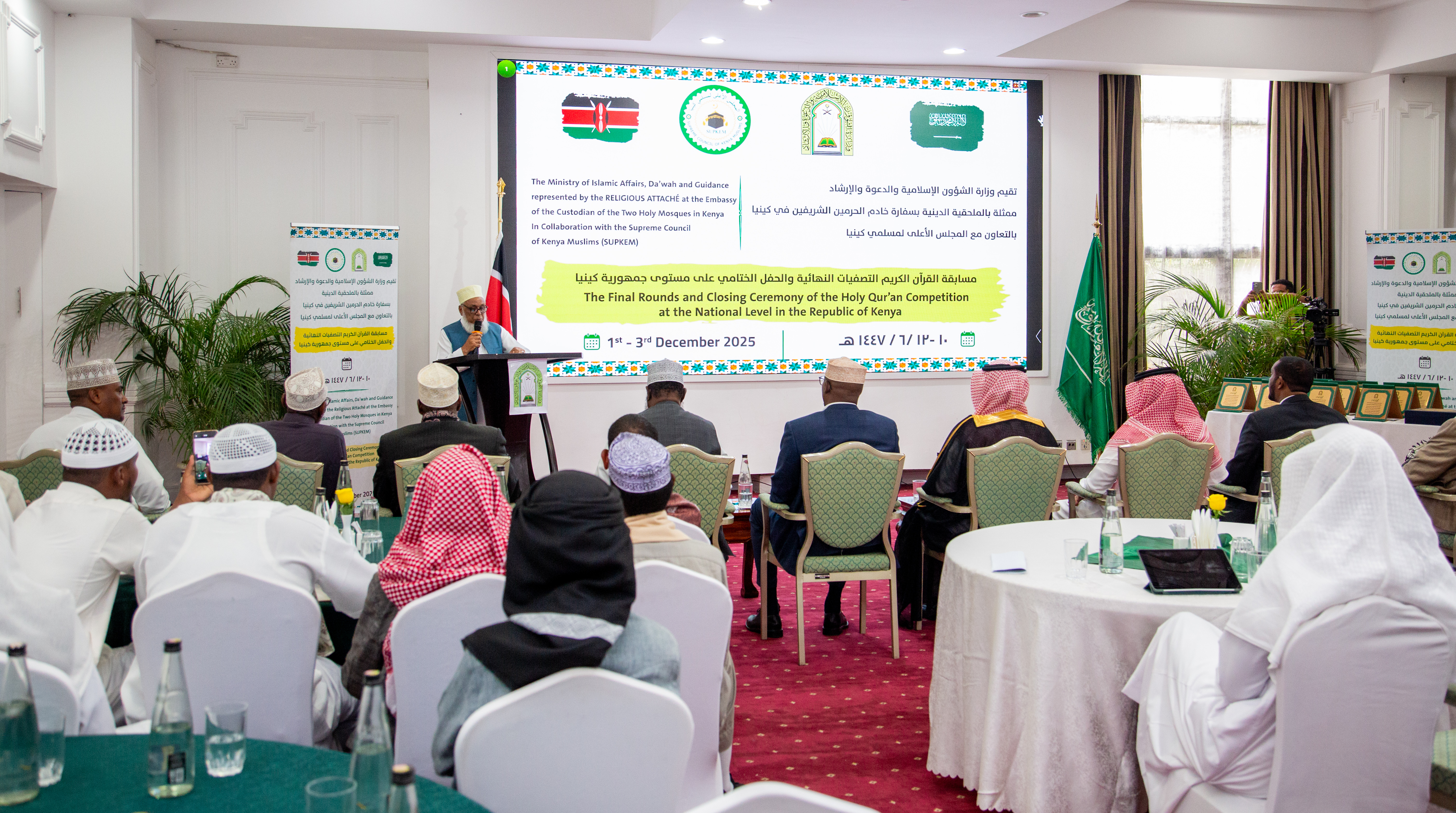 اختتمت وزارة الشؤون الإسلامية والدعوة والإرشاد بالمملكة العربية السعودية، مساء أمس الأربعاء الثاني عشر من جمادى الآخرة 1447هـ، فعاليات مسابقة حفظ القرآن الكريم الأولى للبنين على مستوى جمهورية كينيا، التي