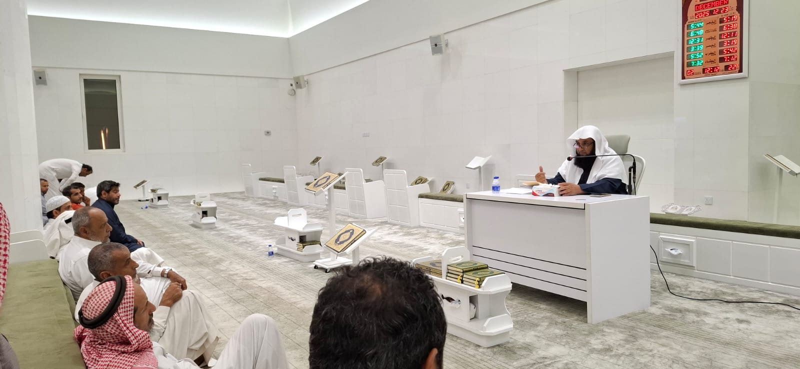 الشؤون الإسلامية بعسير تنفذ سلسلة من المناشط الدعوية بمحافظة بيشة ومحايل عسير ورجال ألمعMOIA04/رجب/1447MOIAABH الشؤون الإسلامية بعسير تنفذ دروس وكلمات توجيهية بمحافظات المنطقة نفذت وزارة الشؤون الإسلامية والدعوة والإرشاد ممثلةً بفرعها بمنطقة عسير، وبالتعاون مع جمعيات الدعوة والإرشاد وتوعية الجاليات بمحافظة بيشة، ومحايل عسير، ورجال ألمع، خلال الفترة من الخامس والعشرين من شهر جمادى الآخرة، وحتى العاشر من شهر رجب لعام ١٤٤٧هـ، سلسلة من المناشط الدعوية، في عددٍ من جوامع ومساجد المحافظات. ففي محافظة بيشة أقيم برنامج دعوي بعنوان " فرحة نزيل"، بسجن محافظة بيشة، كما ألقي درس أسبوعي لشرح منهج السالكين وتوضيح الفقه في الدين، وفي محافظة محايل عسير ألقيت كلمات توجيهية بعنوان: "شهر رجب والبدع، أهمية طهارة القلوب، فضل قضاء حوائج الناس، أحكام الطهارة، التعليق على تفسير سورة الفاتحة وجزء عم، وآثار الإيمان باليوم الآخر، بالإضافة إلى تفسير سورة يوسف، ومكانة الصلاة في الإسلام، كما ألقي في محافظة رجال ألمع الدرس الأسبوعي بعنوان: "باب صفة الصلاة" من كتاب التسهيل في الفقه. وتأتي هذه المناشط ضمن البرامج الدعوية والتوعوية التي ينفّذها الفرع خلال شهري جمادى الآخرة، ورجب، في مختلف محافظات ومراكز منطقة عسير، بهدف توعية الناس بأمور دينهم، وتعزيز الوعي الشرعي، وتشجيعهم على طلب العلم النافع.
