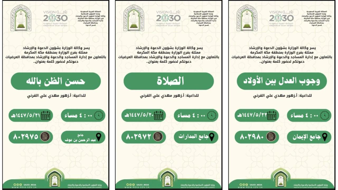 • الشؤون الإسلامية بمكة المكرمة تنظم سلسلة من الكلمات الدعوية في العاصمة المقدسة