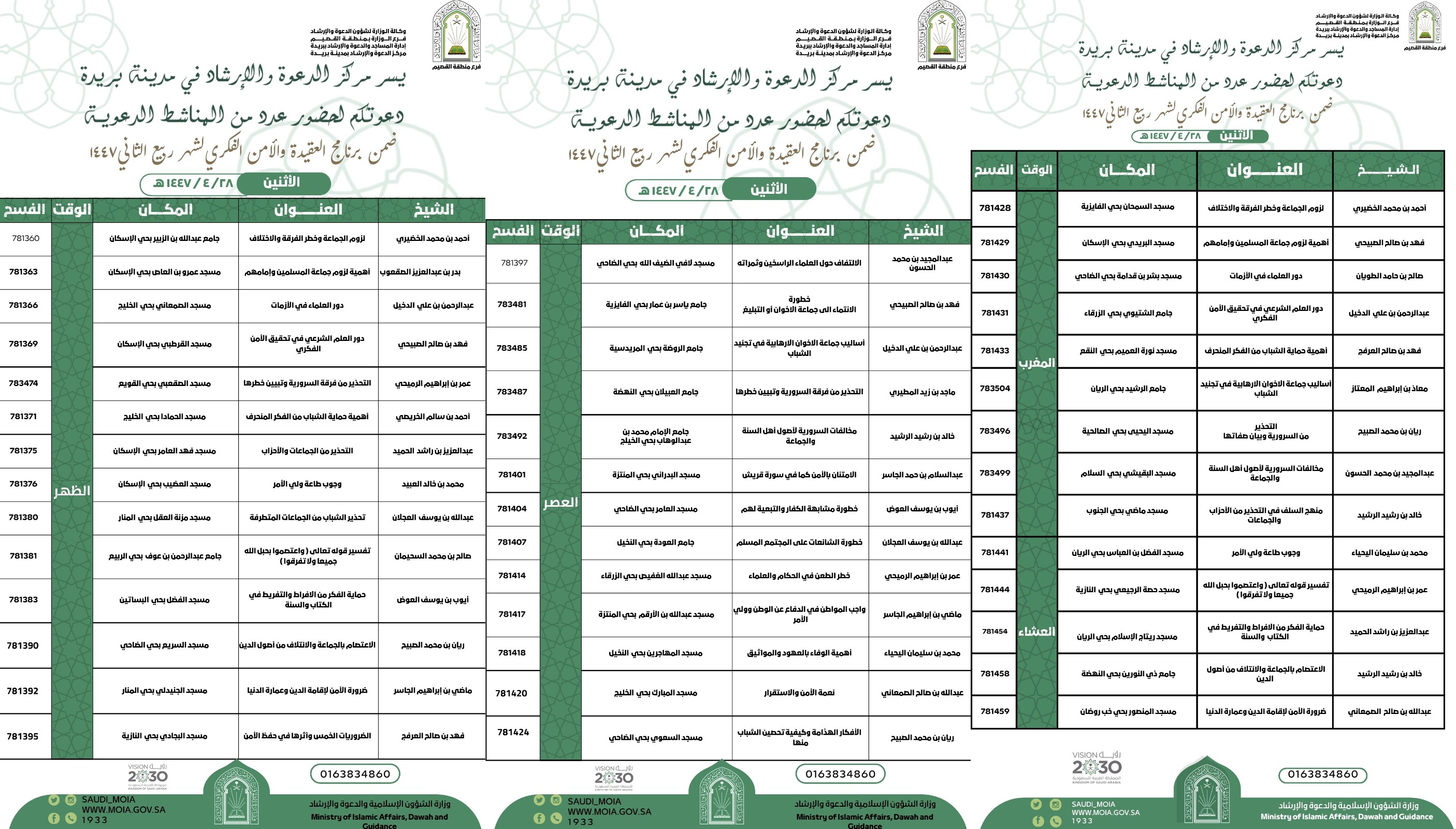الشؤون الإسلامية بالقصيم تنفذ مناشط دعوية بمدينة بريدةMOIA28/ربيع الثاني/1447MOIAالإدارة العامة للإعلام والإتصال المؤسسيينفذ فرع وزارة الشؤون الإسلامية والدعوة والإرشاد بمنطقة القصيم ممثلاً بمركز الدعوة والإرشاد ببريدة مناشط دعوية ضمن برنامج العقيدة والأمن الفكري، حيث يُنظّم اليوم الاثنين 28 ربيع الآخر لعام 1447هـ، مجموعة من المحاضرات والكلمات الوعظية في عدد من الجوامع والمساجد. تناولت هذه المحاضرات والكلمات موضوعات متنوعة، من أبرزها: التحذير من فرقة السرورية وتبيين خطرها ،الاعتصام بالجماعة والائتلاف من أصول الدين ، ضرورة الأمن لإقامة الدين وعمارة الدنيا ، الضروريات الخمس وأثرها في حفظ الأمن ، الالتفاف حول العلماء الراسخين وثمراته ، خطورة الانتماء إلى جماعة الإخوان أو التبليغ ، أساليب جماعة الإخوان الإرهابية في تجنيد الشباب ، مخلفات السرورية لأصول أهل السنة والجماعة ، الامتنان بالأمن كما في سورة قريش ، نعمة الأمن والاستقرار ، الأفكار الهدامة وكيفية تحصين الشباب منها . ويستمر الفرع في تنفيذ هذه المناشط على مدار العام، في إطار جهوده التوعوية الرامية إلى تعميق القيم الإسلامية، وبناء مجتمع واعٍ ومتماسك، قادر على مواجهة الانحرافات الفكرية والسلوكية.