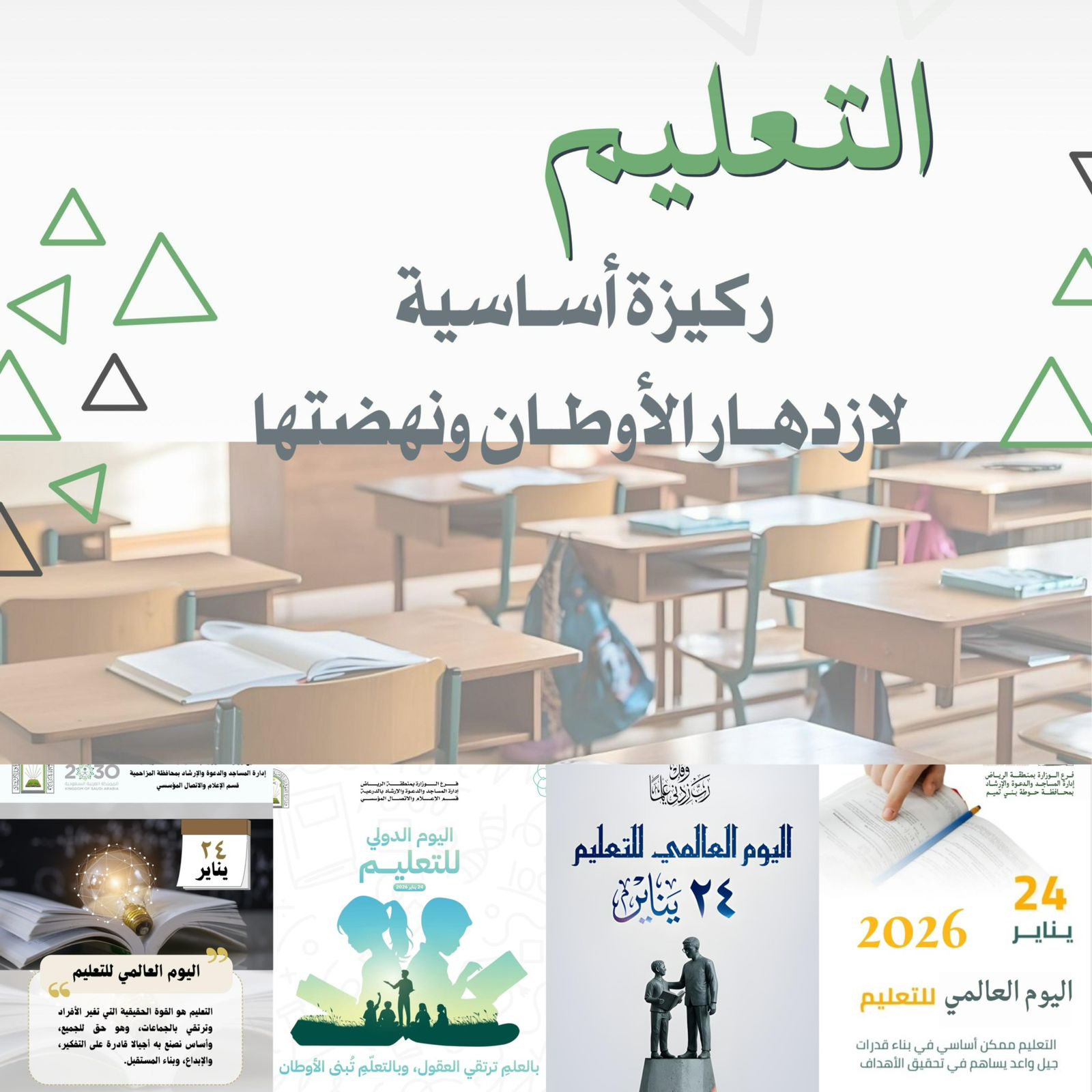الشؤون الإسلامية بمنطقة الرياض تشارك في اليوم العالمي للتعليم بعددٍ من المحافظات شاركت وزارة الشؤون الإسلامية والدعوة والإرشاد، ممثّلةً بفرعها بمنطقة الرياض إدارات المساجد والدعوة والإرشاد في عددٍ من المحافظات، يوم الأحد السادس من شهر شعبان ١٤٤٧هـ، في اليوم العالمي للتعليم، 06/شعبان/1447 التفاصيل