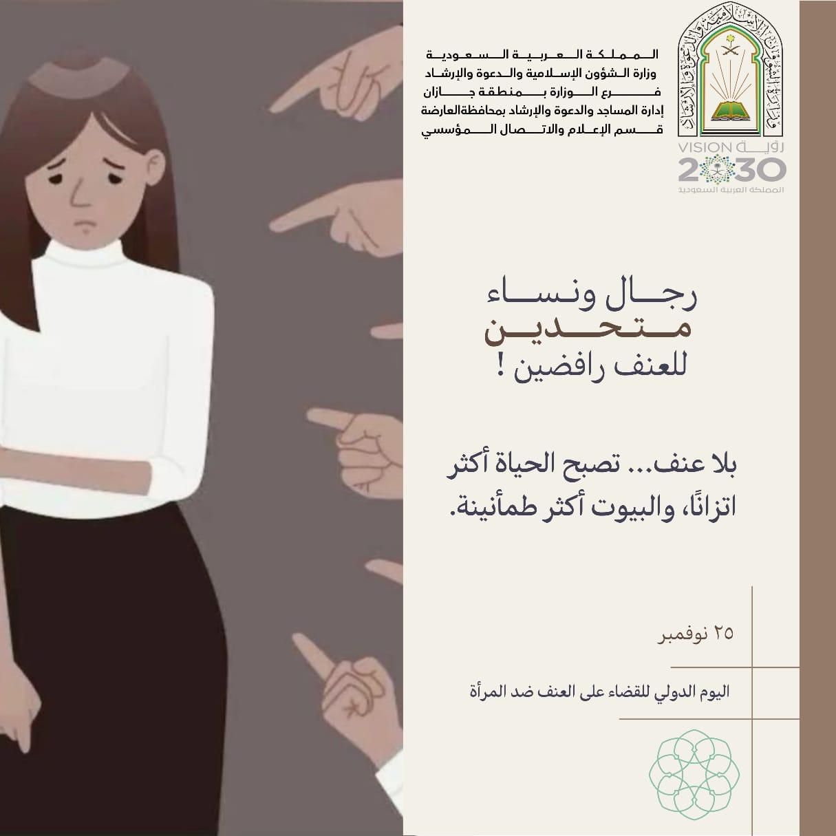 الشؤون الإسلامية بجازان تُسهم في تعزيز الوعي بحقوق المرأة عبر منشورات توعوية أسهم فرعُ وزارة الشؤون الإسلامية والدعوة والإرشاد بمنطقة جازان في تعزيز الوعي بحقوق المرأة، من خلال نشر حزمة من المواد التوعوية عبر منصات التواصل الاجتماعي، تزامنًا مع اليوم الدولي للقضاء على العنف 05/جمادى الثانية/1447 التفاصيل
