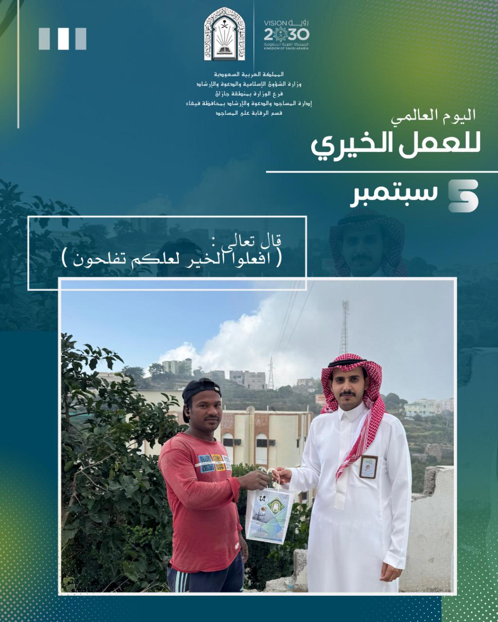 الشؤون الإسلامية في جازان تنفذ أكثر من 28 ألف جولة رقابية على الجوامع والمساجدنفذ فرع وزارة الشؤون الإسلامية والدعوة والإرشاد في منطقة جازان جولات رقابية ميدانية على الجوامع والمساجد خلال شهر صفر 1447هـ، حيث بلغت عدد الجولات 28,533 جولة قام بها 768 مراقبًا ومراقبة.وجاءت هذه الجولات 15/ربيع الأول/1447 التفاصيل