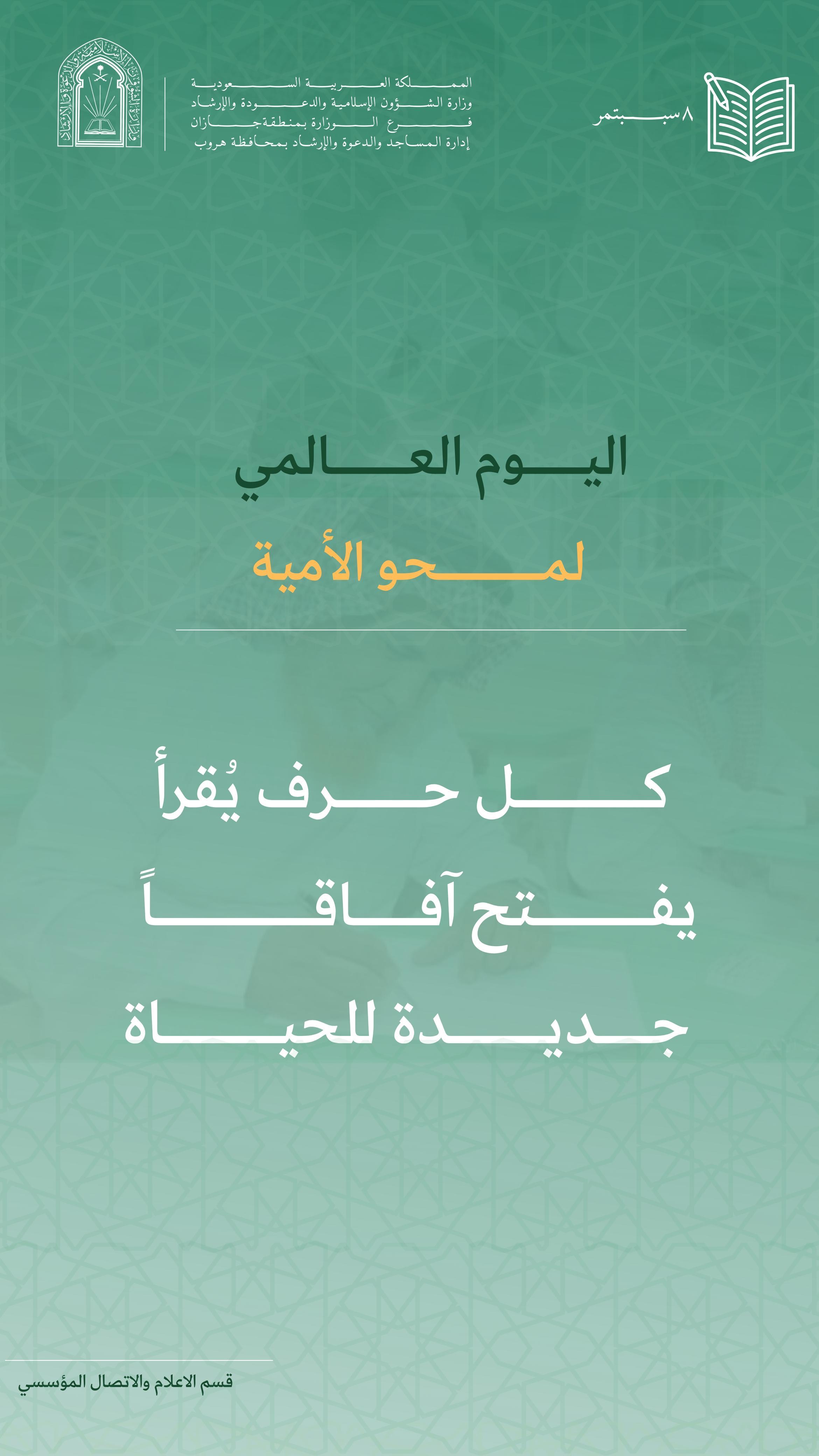 فرع الشؤون الإسلامية بجازان ينفذ مناشط دعوية أسبوعية وشهرية بمحافظة هروبينفذ فرع وزارة الشؤون الإسلامية والدعوة والإرشاد في منطقة جازان، بالتعاون مع جمعية الدعوة والإرشاد وتوعية الجاليات بمحافظة هروب، مجموعة من المناشط الدعوية ابتداءً من مساء يوم الأربعاء، الثامن عشر من 16/ربيع الأول/1447 التفاصيل