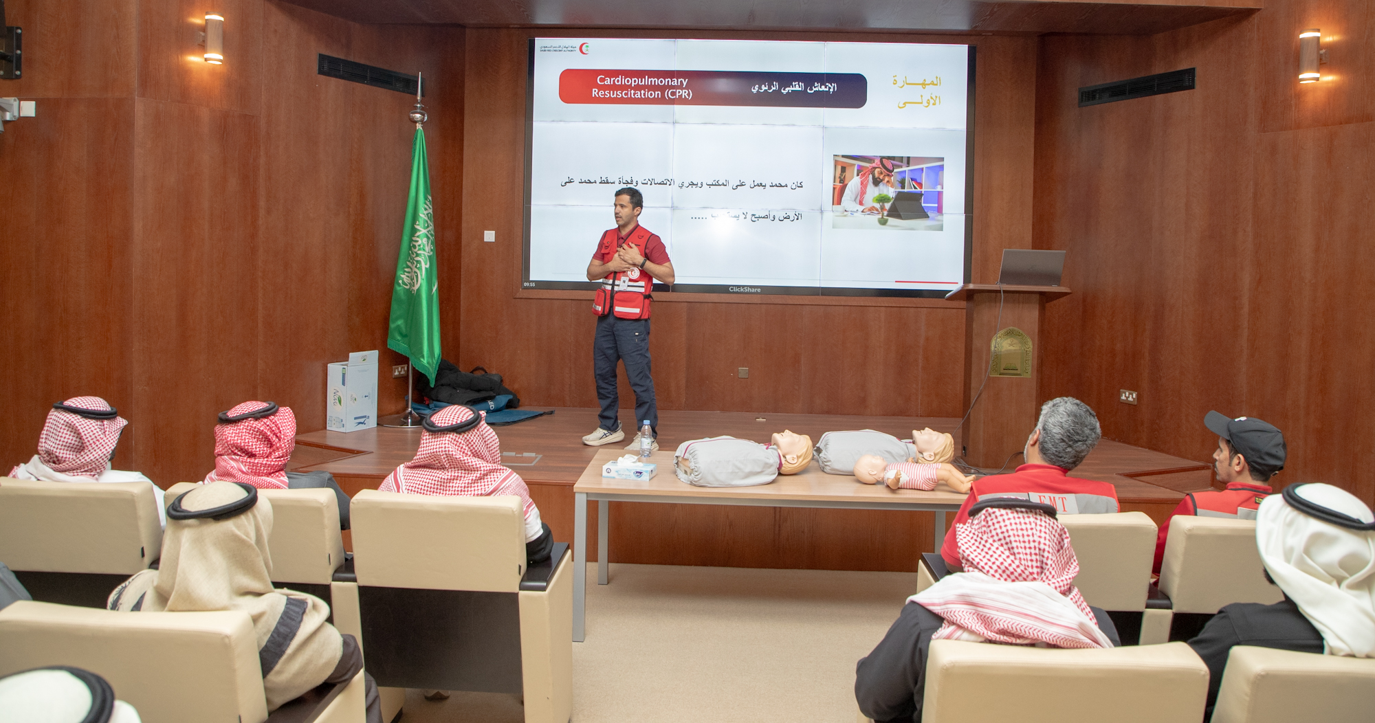 الشؤون الإسلامية تنفّذ برنامجًا تدريبيًا في الإسعافات الأولية بالتعاون مع هيئة الهلال الأحمر السعودينفّذت وزارة الشؤون الإسلامية ممثلة بالإدارة العامة للموارد البشرية، بالتعاون مع هيئة الهلال الأحمر السعودي، اليوم الخميس 5 رجب 1447هـ الموافق 25 ديسمبر 2025م، برنامجًا تدريبيًا في المهارات الأساسية للإسعافات 05/رجب/1447 التفاصيل