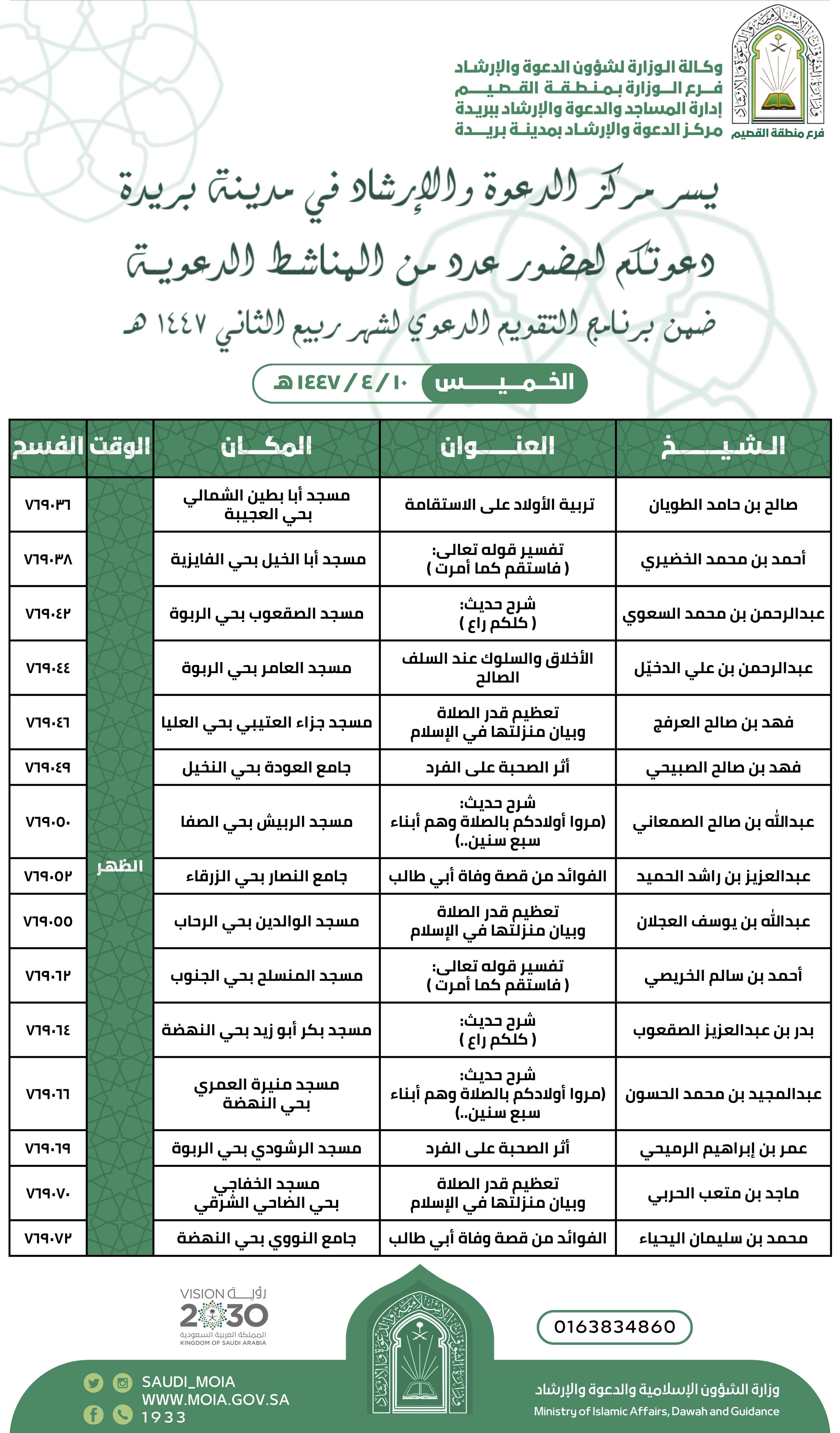 محاضرات دعوية ينفذها فرع الشؤون الإسلامية بالقصيم