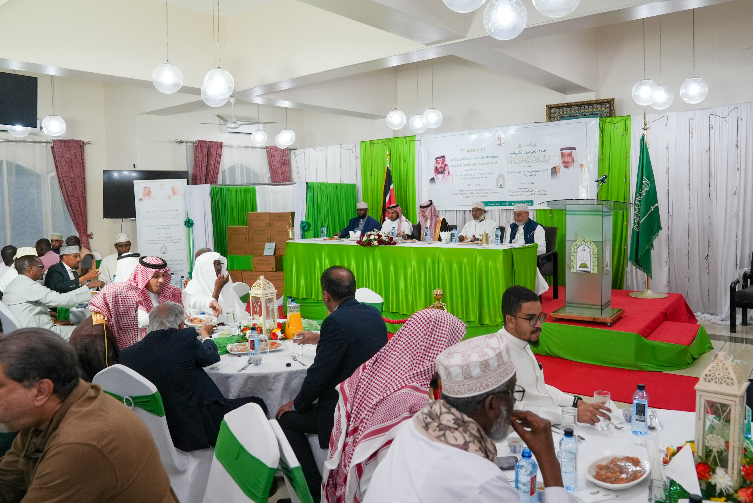أخبار وزارة الشؤون الإسلامية تنظّم مأدبة إفطار للصائمين بالعاصمة الكينية نيروبي ضمن برنامج خادم الحرمين الشريفين لتفطير الصائميننظّمت وزارة الشؤون الإسلامية والدعوة والإرشاد، ممثلةً بالملحقية الدينية بسفارة خادم الحرمين الشريفين في جمهورية كينيا، الخميس الثاني من شهر رمضان المبارك لعام 1447هـ، مأدبة إفطار للصائمين في قاعة المسجد ... التفاصيل